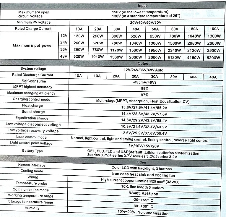 בקר טעינה סולארי MPK-100A תומך ליתיום